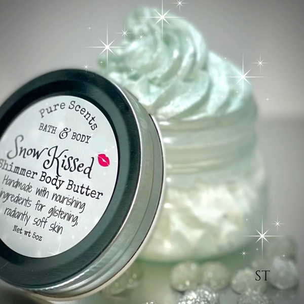 Our popular "Snow Kissed" shimmer body butter is back for the season and is the perfect way to spoil yourself during this hectic time of year💋